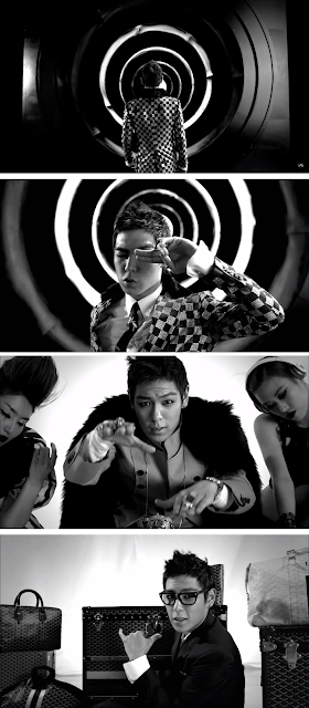 The whole MV is black and white and just full of checkered patterns (it seems Illuminati dictates even fashion trends). T.O.P uses a lot of Illuminati gestures (El Diablo, Hidden Eye, “As Above, So Below”):