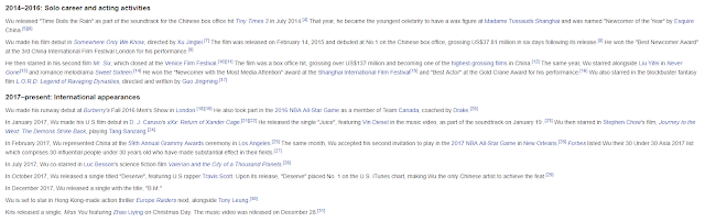 Just a casual glance through his Wikipedia page post-EXO should wow you.