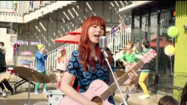 Hyoyeon from Girls' Generation however clearly has no fuckin' idea, and probably had about 30 seconds of guitar coaching before being given that thing for the So Nyuh Shi Dae video (which is a real guitar that exists, by the way, not a toy ). The posture and silly "omg I'm like, holding a guitar" grin gives away her complete lack of experience, but in motion the impression is even worse - she just doesn't move the way a guitarist does - it's obvious to any guitar player watching the video that she knows nothing about guitar, period.