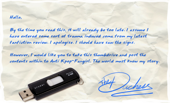 I thought about scrapping this week's fanfic entirely, picking something good and just pretending that it was my plan all along, but what am I if not a person with vague morals and standards. I will read this trash and I will review it. I will do it for the greater good.