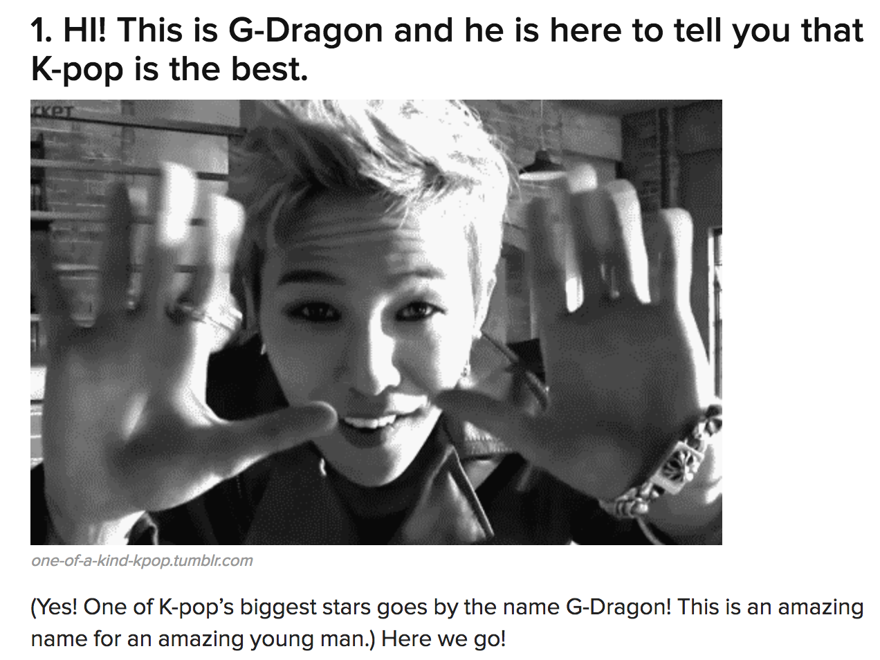 We are clearly already off to a great, unbiased start as her first point involves using a K-idol to "tell you" about how amazing Kpop is.